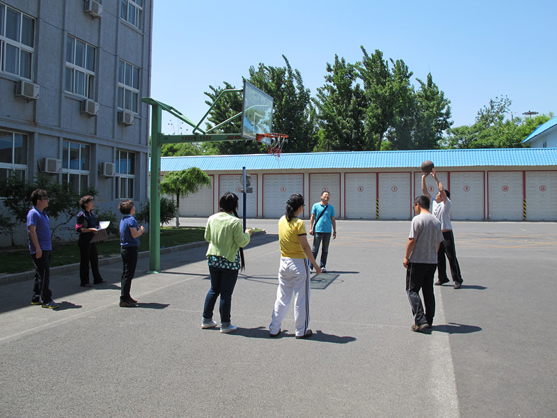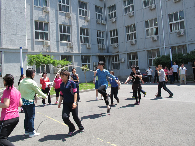 公司全体教职工以工会小组为单位参加比赛。首先是定点投篮项目,5个工会小组分别派出两名代表进行定点投篮。篮球架旁,围观的老师不断传出声声叫好声;在第二项四人踢毽比赛中,每个工会小组选派4人参赛,围成一圈轮流踢毽,计时2分钟。比赛中,白色的毽子在4个选手的脚上脚下跳跃着,每个小组选手配合默契;最为热闹的是最后六人8字跳长绳比赛。场下的拉拉队员助威呐喊,场上的选手个个身轻如燕,在甩动的长绳下鱼贯而入,灵巧而出。