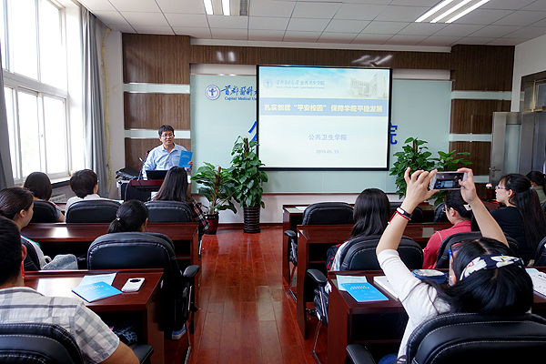 最后,学办主任富奇强调了迎检验收工作的注意事项,并要求全体党员干部带领全班同学组织开展“平安校园”主题班会,希望同学们在“平安校园”迎检验收工作中展现公卫学子的良好精神风貌。