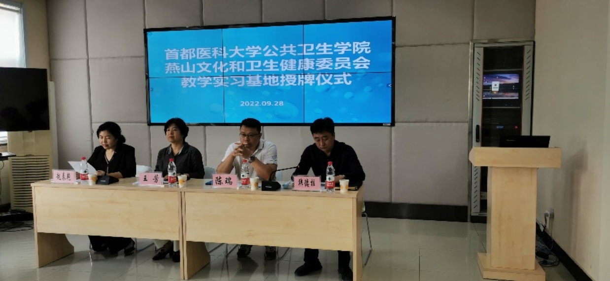 9月28日,“qm球盟会燕山文化和卫健委教学实习基地授牌仪式——暨公共卫生安全智慧社区合作共建框架协议签署仪式”在燕山医院4楼会议室顺利召开。参加会议的领导和嘉宾有:燕山办事处副主任王芳,燕山文化和卫生健康委员会主任韩德柱、副主任赵春艳,燕化医院、燕山疾控等部门负责人;qm球盟会经理陈瑞、副经理余焕玲、副经理韩优莉及项目相关人员,仪式由燕山文化和卫生健康委员会副主任赵春艳主持。