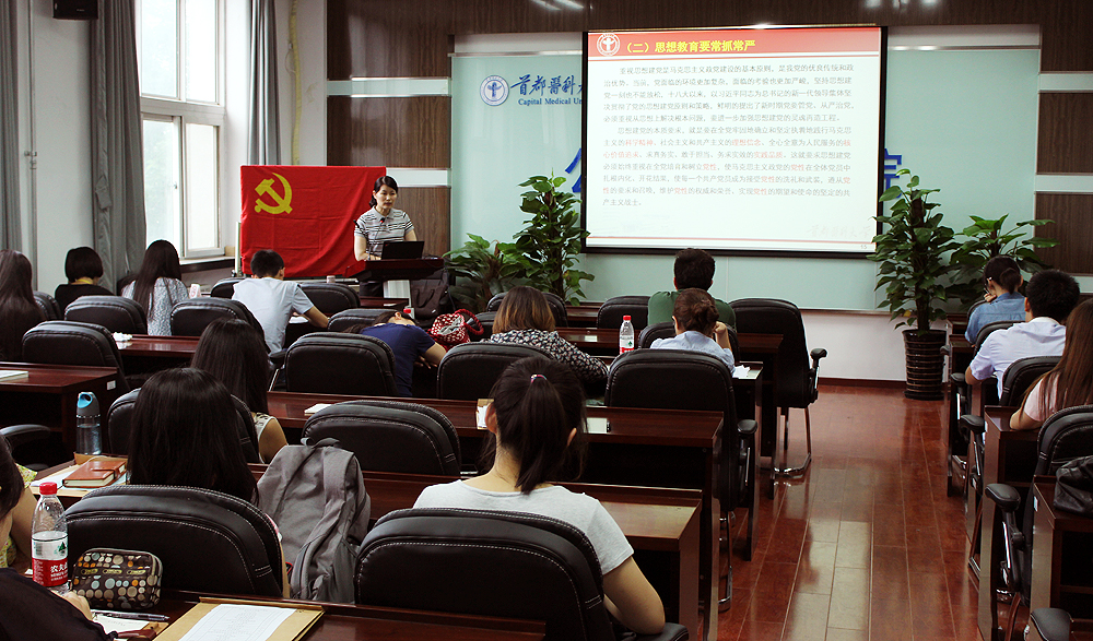 李老师首先从当前我国经济、政治和社会生活中的一个热词“新常态”讲起,向同学们解释了“新常态”的定义,以及党中央治国理政战略新布局提出“全面从严治党”的产生背景。随后,李老师从深刻认识党建新常态的科学内涵、认真落实党建新常态的基本要求以及主动适应党建新常态的全面挑战三个方面,向同学们讲授了一堂生动、严肃的党课。“从严治党”作为巩固我们党执政地位的重大战略举措,具有完成党的执政使命,巩固党的执政基础,提高党的执政能力的重大现实意义和深远历史意义。