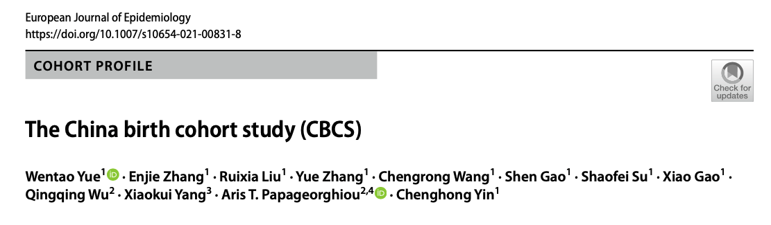 近日,球盟会附属北京妇产医院阴赪宏教授团队在流行病学顶尖杂志《European Journal of Epidemiology》上发表题为“The China birth cohort study (CBCS)”的论文,介绍了中国出生人口队列(CBCS)2017到2019年的进展情况,并重点阐述CBCS研究方案设计和初步结果。附属北京妇产医院岳文涛教授为第一作者,阴赪宏教授和英国牛津大学约翰拉德克利夫医院Aris T. Papageorghiou教授为共同通讯作者。