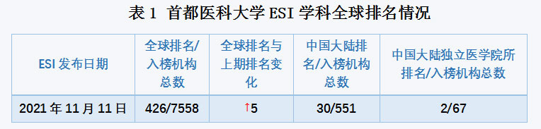 公司本期位列ESI学科全球排名426位,相比2021年9月排名上升5位。同时,公司在中国大陆入围的551家机构中排名第30位,在中国大陆独立医公司所入围的67个机构中位居第2位(见表1)。